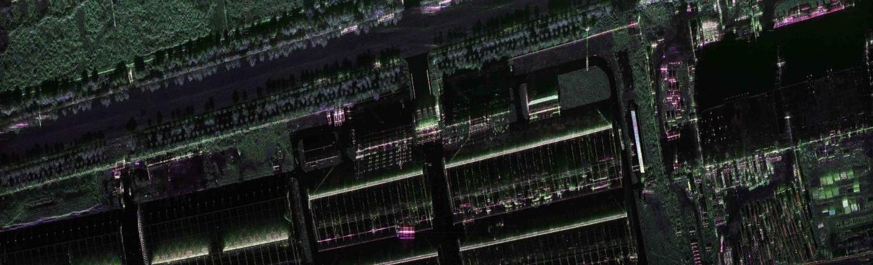 此次“盛景一号”MiniSAR的成像结果显示:雷达成像质量优异,空间分辨率达到0.12米,在清晰识别地面目标的同时,对于建筑物及建筑物上的标识牌、金属管道、公路、汽车、树木、乃至田间小道等地物的后向散射信号极为敏感,在全极化伪彩色影像上此类地物后向散射特征显著。