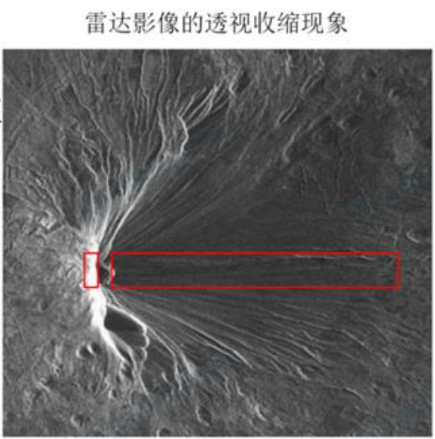 透视收缩也称"前缩",起伏地形的雷达影像山坡长度的按比例计算后总比实际长度要短。主要是面向雷达波束的斜面投影到斜距平面时斜面的压缩,归根结底还是距离压缩现象。