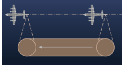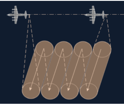 扫描成像(Scan SAR):扫描模式与条带模式的不同在于,在一个工作周期内,天线波束会沿着距离向进行多次扫描。这种方式牺牲了方位向分辨率,但覆盖区域比聚束和条带模式要大得多。然而,由于方位向的带宽降低,方位角分辨率远低于条带成像模式。