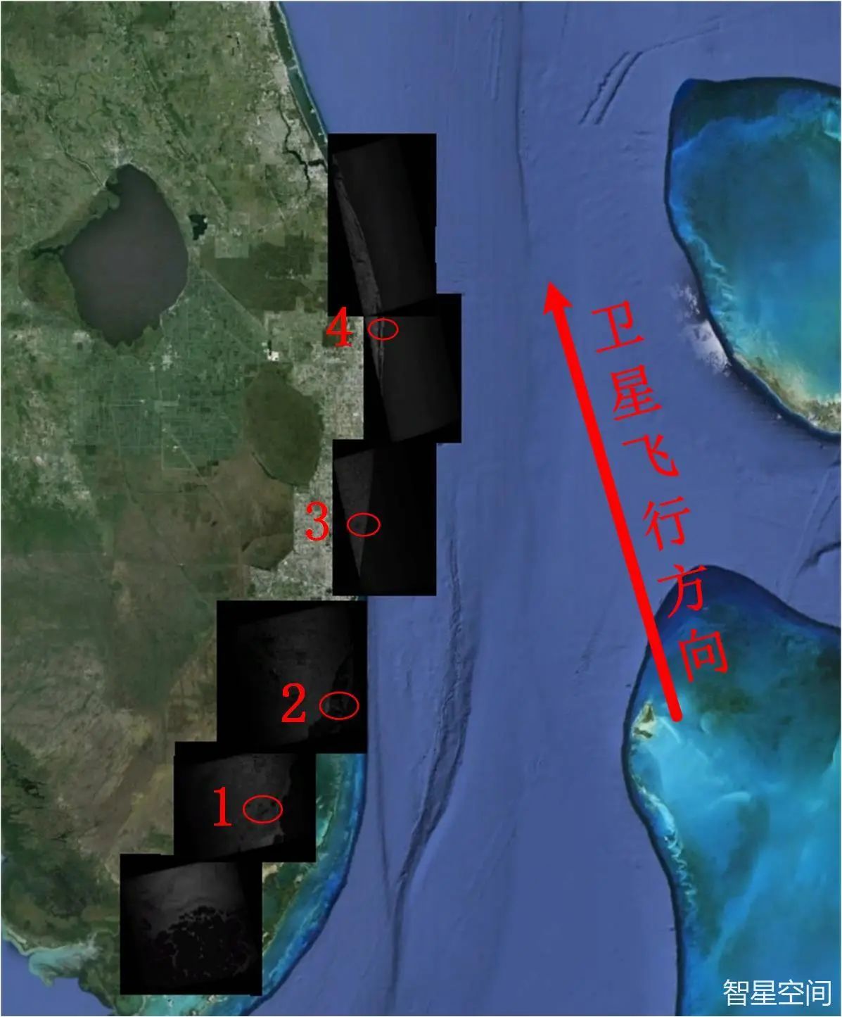 近日,智星空间联合北京理工大学雷达技术研究院,利用智星二号A星的二维相控阵的电扫能力,成功实现了佛罗里达东海岸长曲线场景成像。