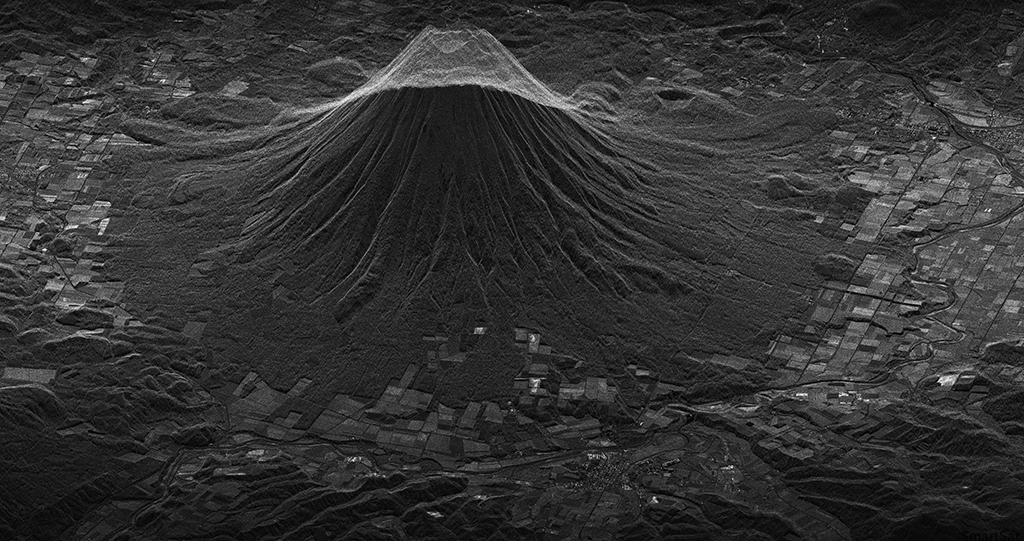 富士山(Mount Fuji)位于日本本州中部,坐落于静冈县与山梨县的交界处,是一座成层火山,以其象征性的对称锥形结构闻名,海拔3776米,是日本的最高峰。通过我们X波段的卫星智星二号A星(济高科创号)可以清晰地观察到富士山典型的对称锥形,山体表面光滑,火山口轮廓清晰,SAR影像能够准确捕捉其对称性和高度变化。富士山作为活火山,通过SAR卫星可以监测其火山活动迹象,例如地表的微小变形、热异常或火山气体释放等都可以通过高频次的SAR观测数据进行分析,从而提前预警潜在的火山喷发。