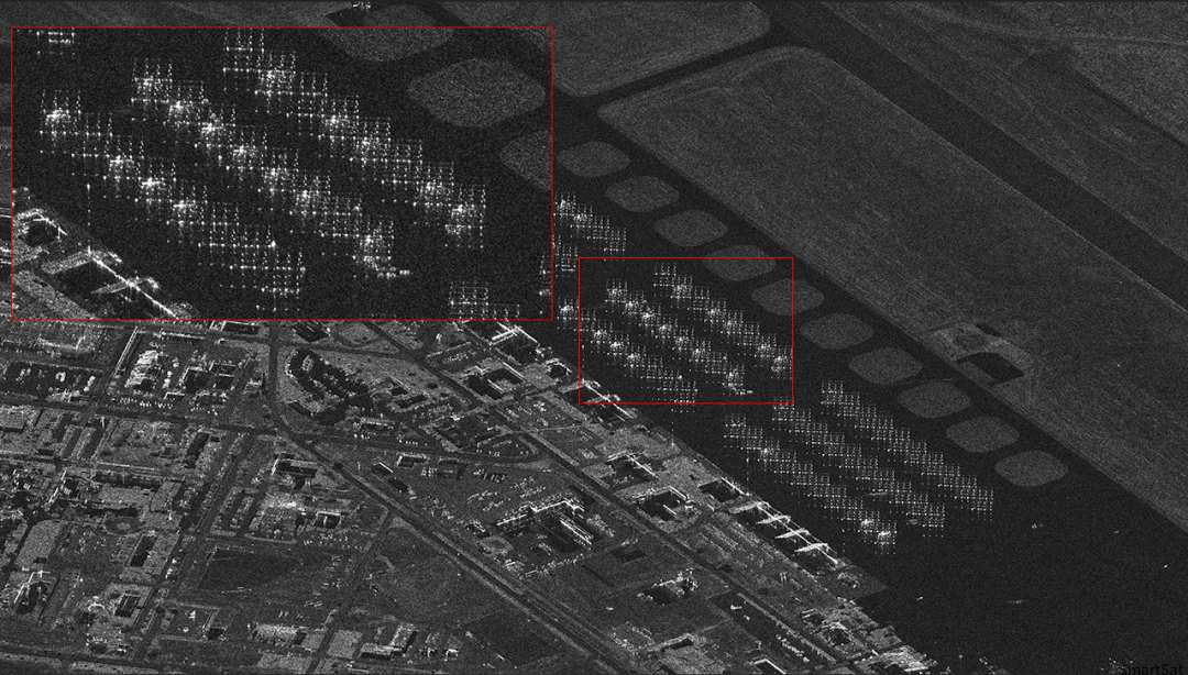 从图中可以看出,光学只能看到物体表面,而X波段的SAR具有一定的穿透性,可以穿透遮盖物,捕捉到遮盖物下的飞机。