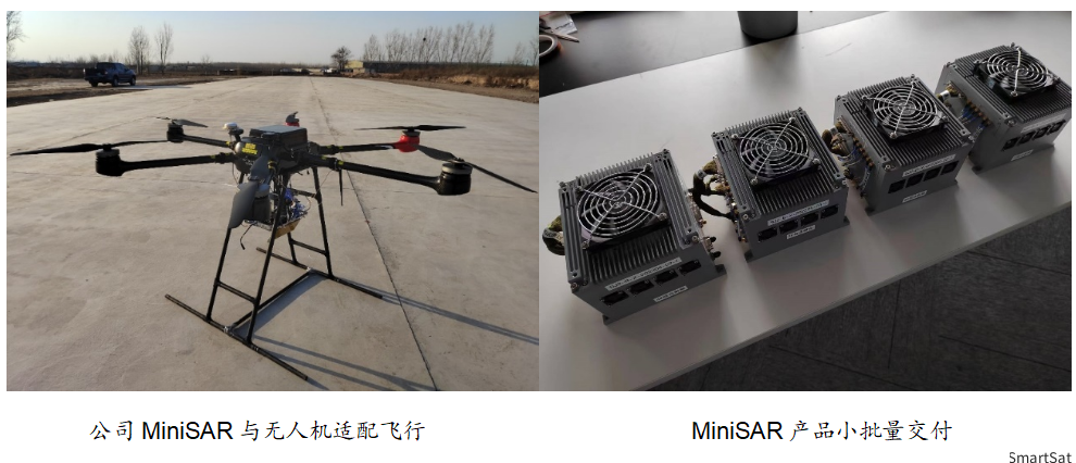 公司目前正在建设12颗卫星组成的高时效商业智能合成孔径雷达卫星星座,任务指令即时上传,在轨雷达成像解译,小时级的关键数据回传。此外,公司针对轻小型无人机开发了MiniSAR产品,并实现批产,具备实时成像全极化及高达0.1m分辨率能力,具备国际领先水平。