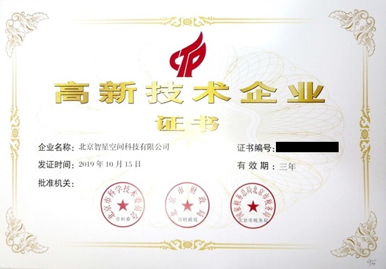 近日,经科技部火炬中心认定,北京市科学技术委员会、北京市财政局、北京市税务局联合批准北京智星空间科技有限公司为“国家高新技术企业”;此外,近日智星空间被科技部火炬中心认定为“科技型中小企业”。
